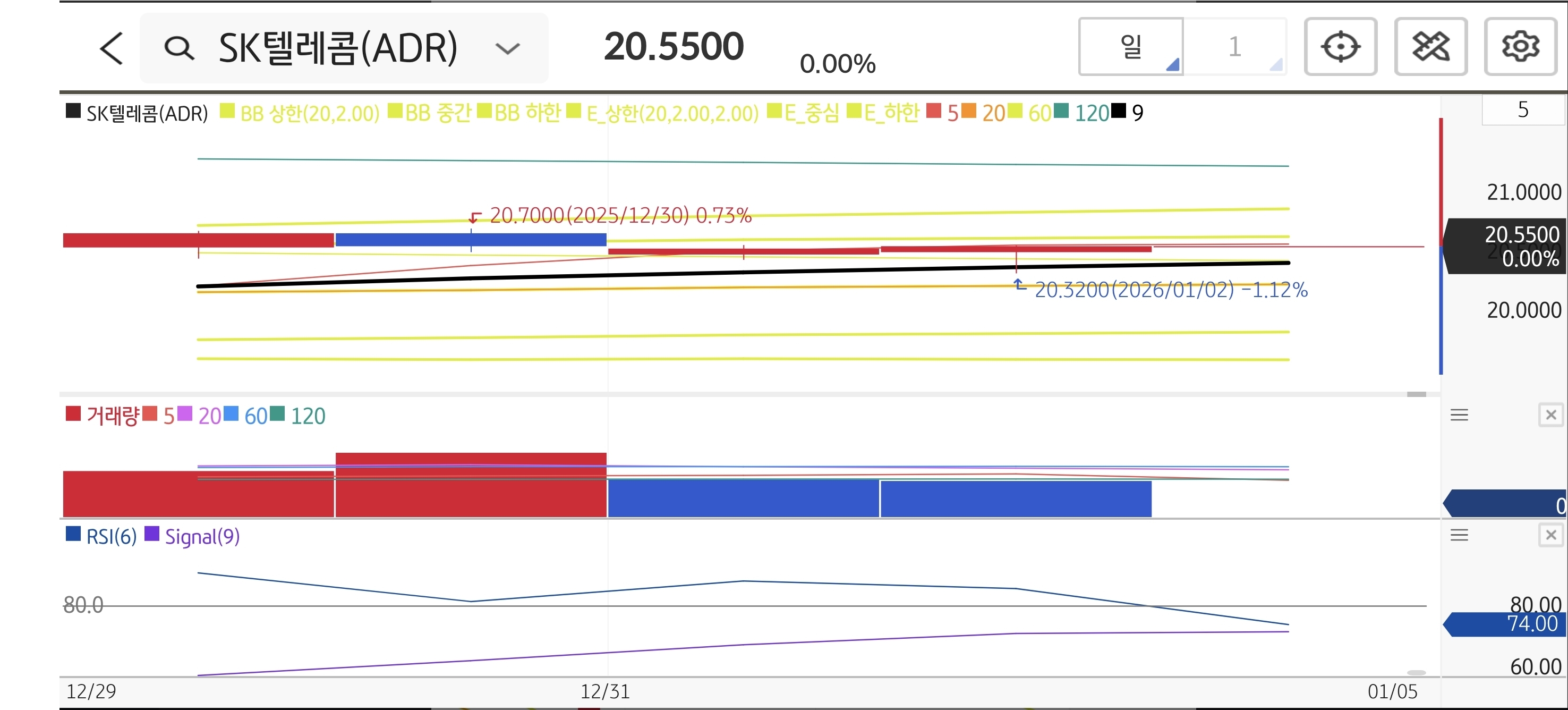 - 📈 기술적 패턴: 전형적인 '수렴형 횡보' 구간입니다. 뉴스 발표 후(29일) 반짝 상승 시도가 있었으나, 20일선의 저항을 뚫지 못하고 좁은 박스권($20.30 - $20.70)에 갇혔습니다. 거래량이 극도로 줄어든 상태로, 방향성을 탐색 중입니다.
