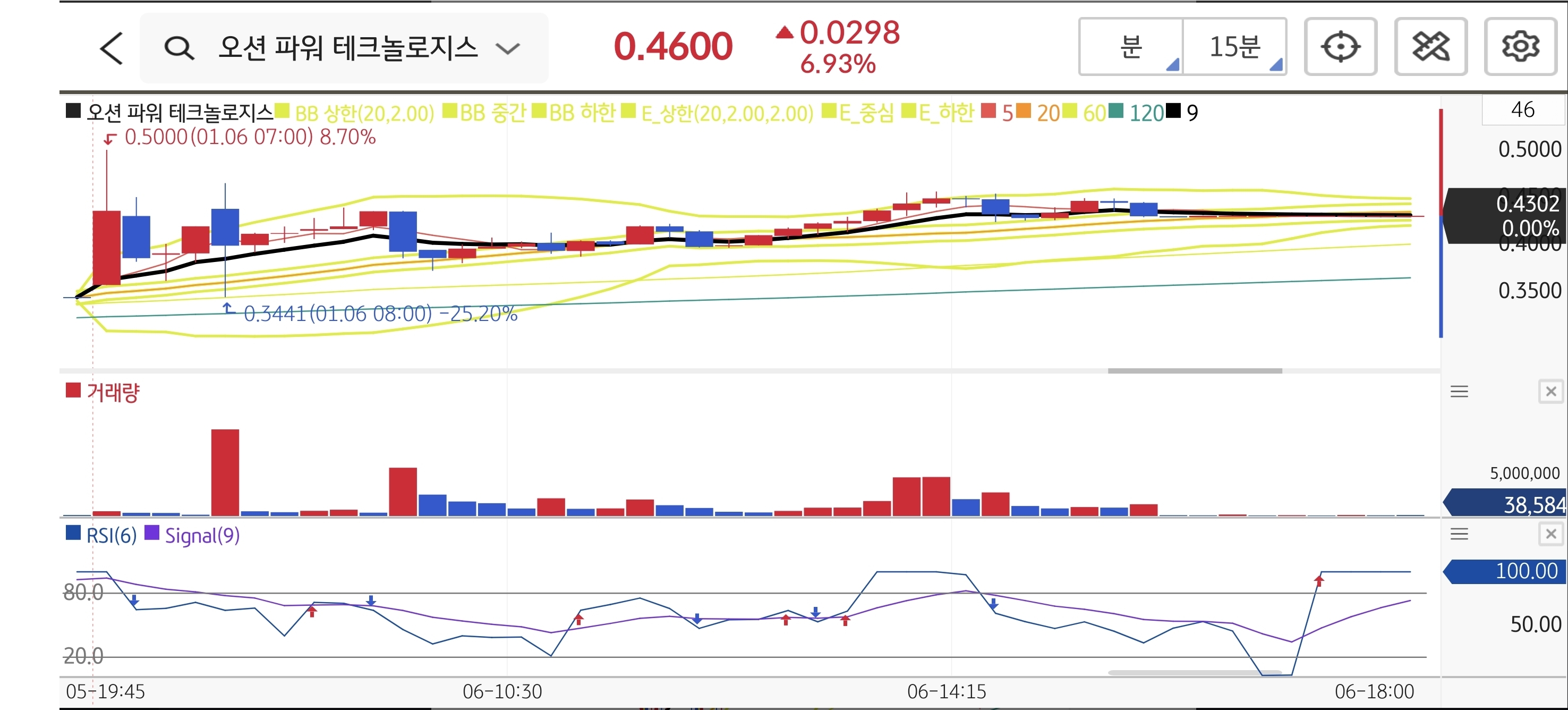 국토안보부(DHS) 계약 호재가 동전주의 가벼운 시총과 만나 시너지를 냈습니다. 시초가가 $0.4341로 갭상승 출발하여 추천가($0.39)보다 높게 시작했지만, 장중 $0.46까지 상승하며 추가 수익 구간을 주었습니다. 종가 역시 상승세를 유지하며 마감해, 갭상승 후 무너지지 않고 버티는 힘을 보여주었습니다.