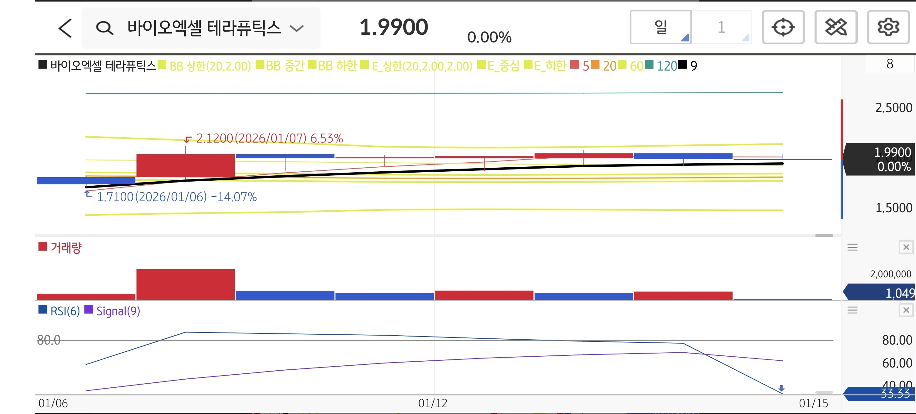 - 🧐 트레이더 복기: 전형적인 '바닥 다지기' 구간입니다. 악재는 대부분 반영되었고, FDA 승인 기대감이 저가 매수세를 유입시키고 있습니다. $1.99까지의 상승은 기술적 반등의 서막일 수 있습니다.
