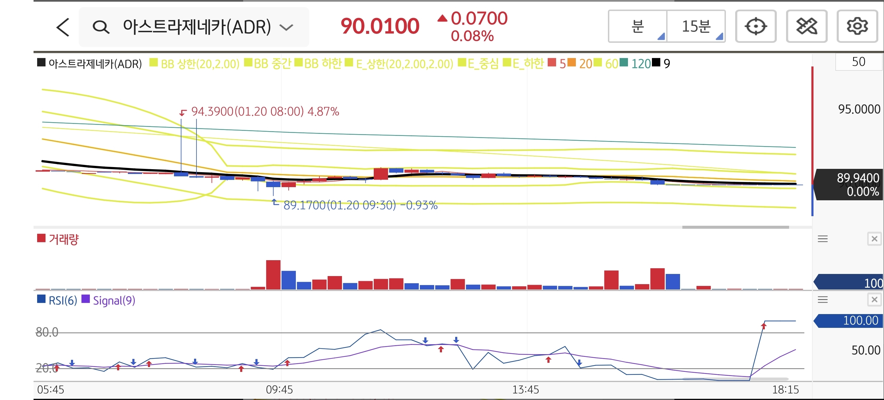 ENHERTU의 대형 호재에도 불구하고 시초가가 $90.14로 갭하락 출발했습니다. 이는 진입 추천가($94.00)보다 훨씬 낮은 가격으로, 시장의 반응이 예상과 다름을 시사했습니다. 장중 반등 시도가 있었으나 매도세가 우위였고, 결국 약보합 마감했습니다. 원하는 타점이 오지 않았으므로 원칙대로 관망하며 자산을 지킬 수 있었던 케이스입니다.