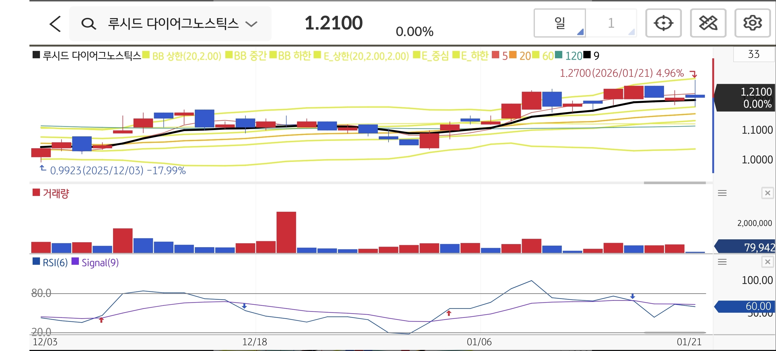 💡 Tip: 120일선 안착 여부가 중요합니다. 안착에 성공한다면 다음 매물대인 $1.45까지는 가벼운 흐름을 보일 수 있으니, 눌림목에서 분할 매수로 접근하세요.