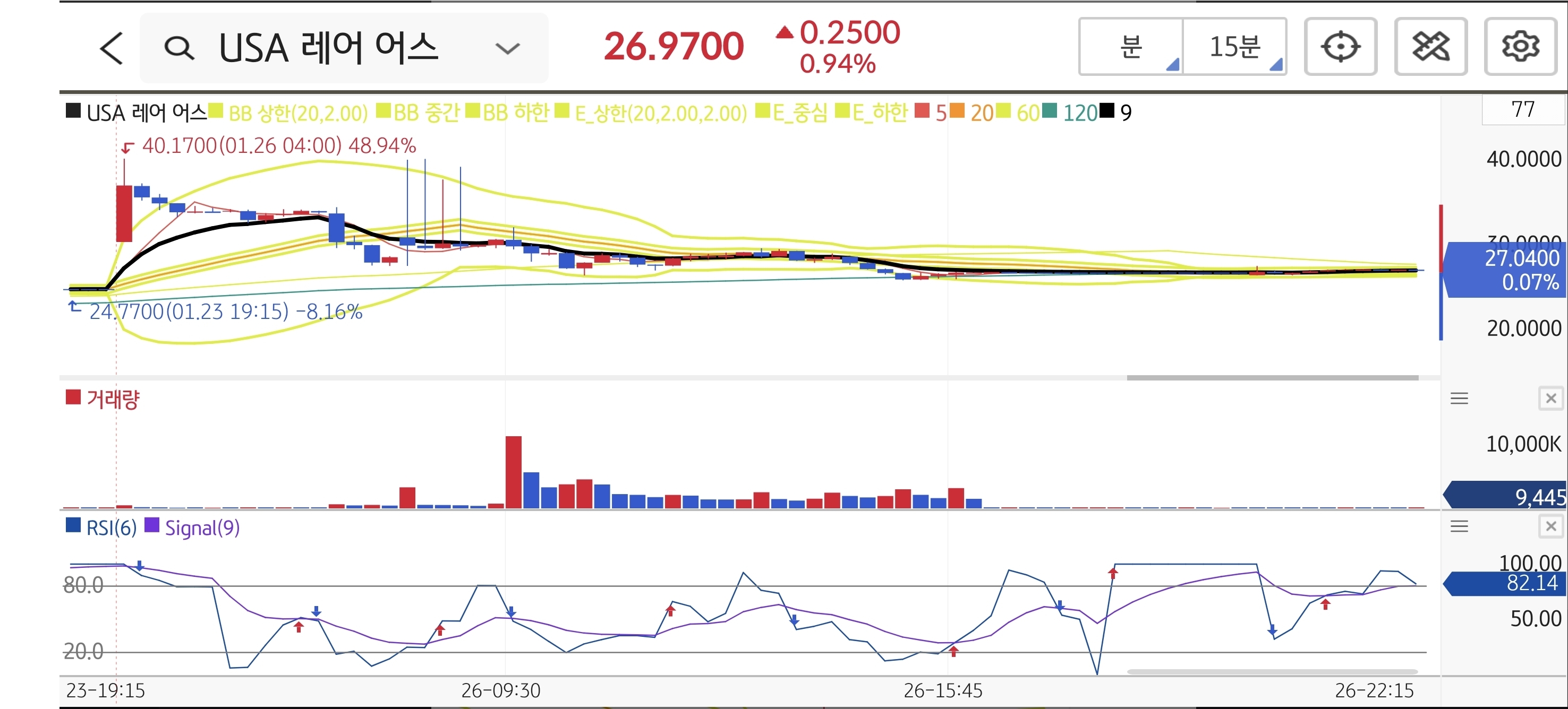 초대형 자금 확보 호재로 장 초반(프리마켓 포함) $40.17까지 폭등하며 목표가를 훨씬 상회했습니다. 그러나 정규장 시초가($30.55) 이후 매도세가 압도하며 주가가 흘러내렸습니다. 장중 진입 밴드($27.50~$28.50)를 하향 돌파했으나, 다행히 손절 라인($24.50)은 지켜내며($24.77 저점) 마감했습니다. 갭 메우기가 진행된 만큼 내일 장 시초가 지지 여부가 핵심입니다.