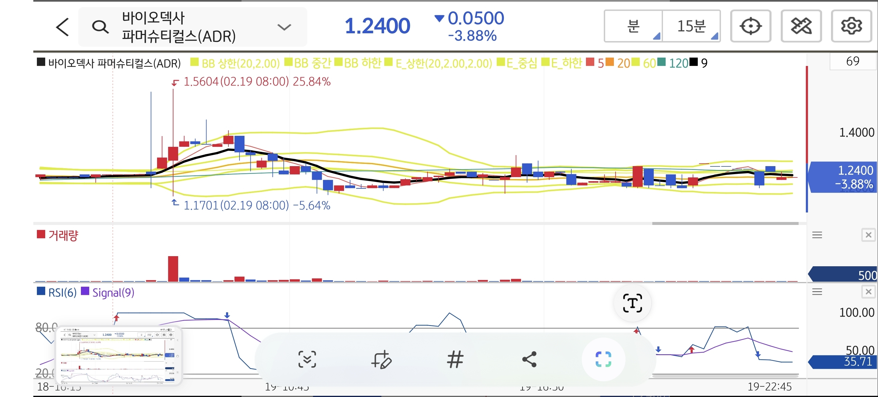 오츠카 제약과의 라이선스 계약 소식에 장 초반 $1.5604까지 급등하며, 제시해 드린 1차 목표가($1.50)를 단숨에 돌파했습니다. 그러나 소형 바이오주의 특성상 갭상승 이후 '재료 소멸'을 노린 차익 매물이 대거 출회되었고, 시초가($1.35)를 지키지 못한 채 장중 내내 흘러내려 결국 전일 종가 아래인 $1.29로 마감했습니다. 장 초반 슈팅에 매도하지 못했다면 아쉬운 결과입니다. $1.25 지지 여부를 꼭 확인하시기 바랍니다.