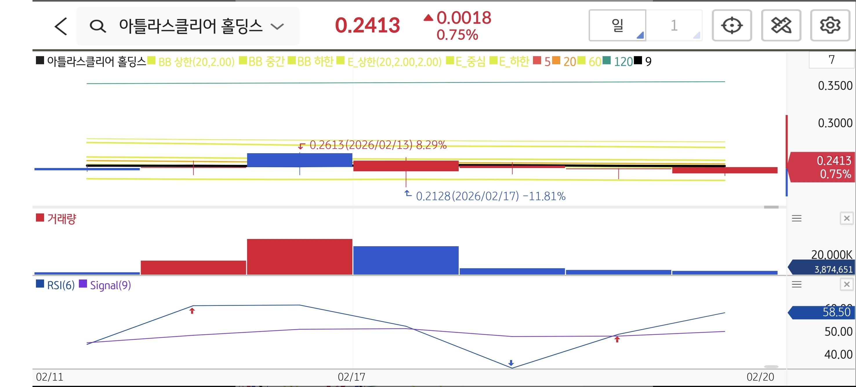 -0.29%- 🧐 변동 이유: 2,500만 달러 투자 유치로 자금난은 해소했으나, 지분 희석(Dilution) 우려가 상쇄하며 강보합권 횡보.