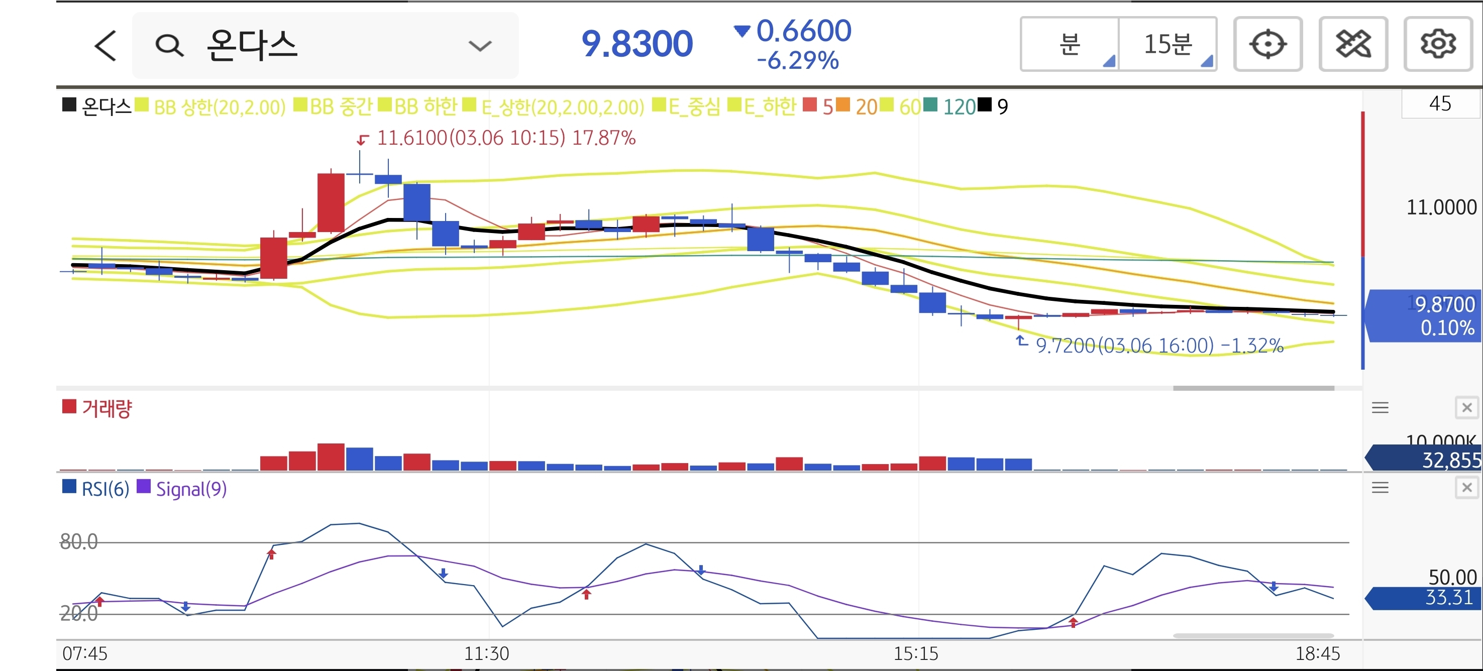 시초가 10.25 달러에서 출발하여 장 초반 수급이 강하게 몰리며 최고가 11.61 달러까지 급등했습니다. 이는 전일 포스팅에서 제시해 드린 단기 저항 구간 하단인 11.50 달러를 돌파한 것으로 장중 단기 수익 실현이 충분히 가능한 구간이었습니다. 이후 차익 실현 매물이 쏟아지며 하락 전환하여 종가 9.83 달러로 마감했으나 장중 저가는 9.72 달러로 추세 이탈 라인인 9.00 달러를 안전하게 방어했습니다. 1차 목표가에 도달했으므로 성공적인 단기 트레이딩으로 판정합니다.