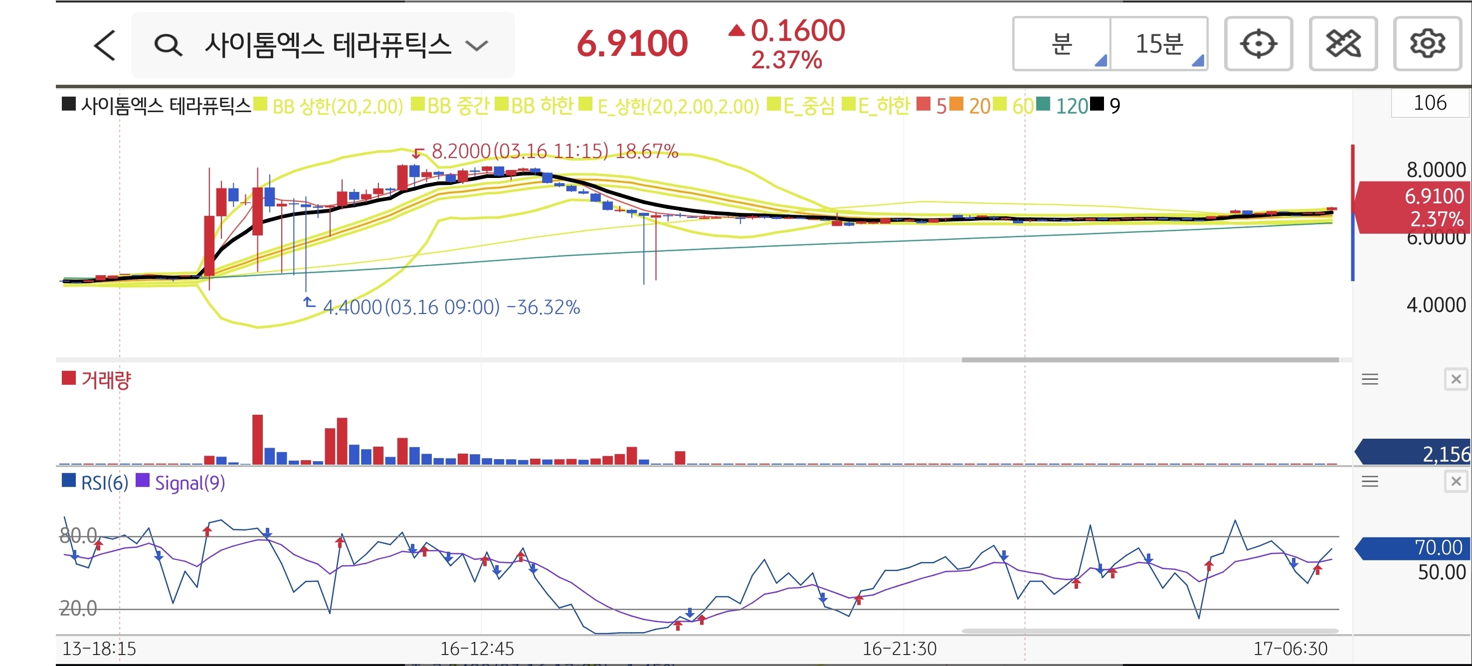 15분봉상 장중 최저가가 1.70 달러로 손절가 1.60 달러를 이탈하지 않았으며 장중 최고가 2.30 달러를 기록하며 단기 저항 구간인 목표가에 안착했습니다. 전날 발표된 4분기 주당순이익 시장 예상치 상회라는 강력한 호재와 대량 거래량을 동반한 매수세가 오전 장까지 이어지며 저항선을 성공적으로 돌파했습니다.
