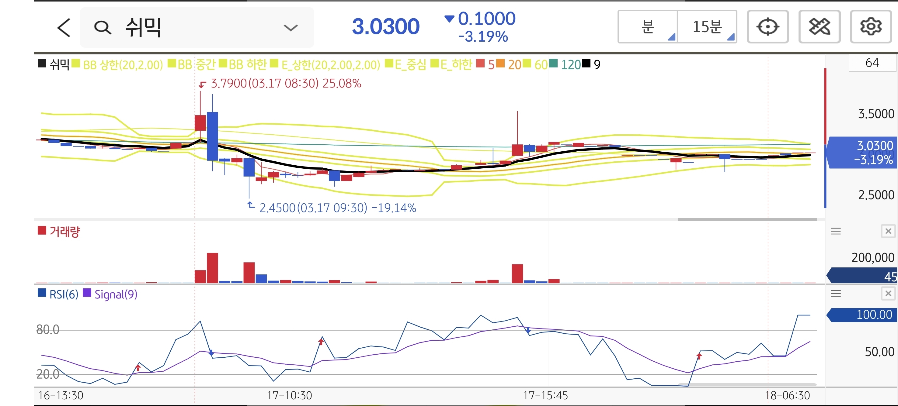 개장 직후 강한 흔들기가 나오며 장중 최저가 2.45 달러를 기록, 추세 이탈 라인을 하회했습니다. 비록 이후 저가 매수세가 유입되며 장중 최고가 3.79 달러까지 반등하고 상승 마감했으나, 장중 저가가 손절가를 명확히 이탈한 만큼 원칙 대응이 필요한 흐름이었습니다.